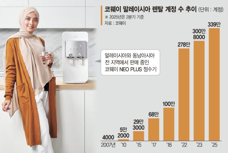 말레이시아 현지 교민은 현지 진출 대기업들의 인지도와 호감도에 대해 묻는 사람들의 질문에 누구나 할 것없이 말레이시아 정수기 시장을 휩쓴 코웨이를 언급한다. 코웨이는 지난 2007년 일찌감치 렌탈·코디 서비스를 도입한 이후 현재 말레이시아에서 정수기, 공기청정기에 이어 에어컨까지 사업을 확장시키며 'K렌탈'의 대명사로 확고히 자리매김했다.