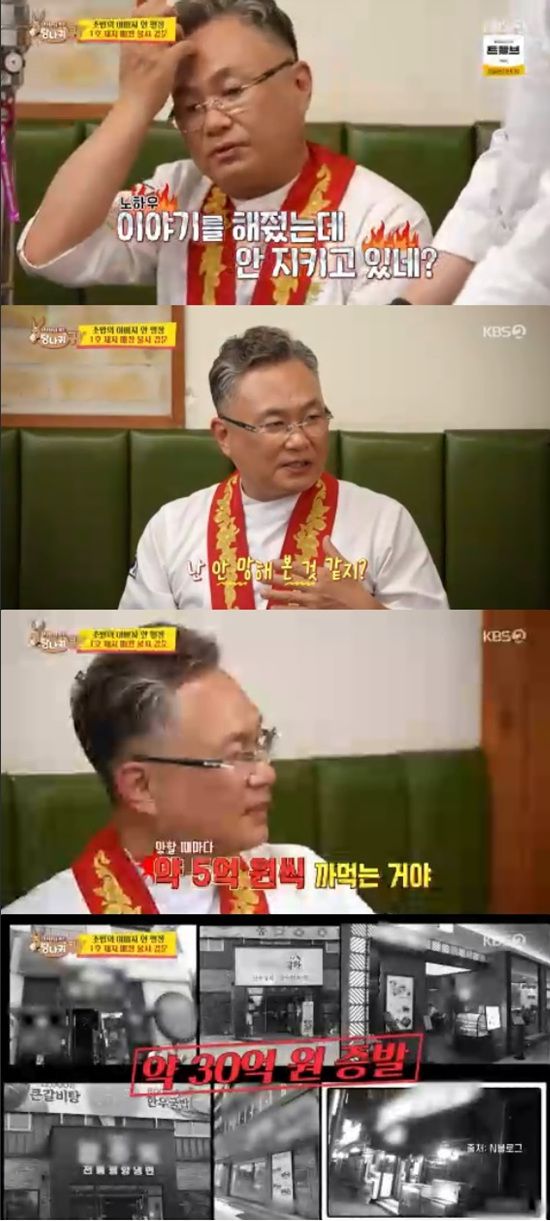 안유성은 폐업할 때마다 5억씩 까먹는 것이라면서 신재원에게 정신을 똑바로 차리고 가게를 운영해야 한다고 조언했다.