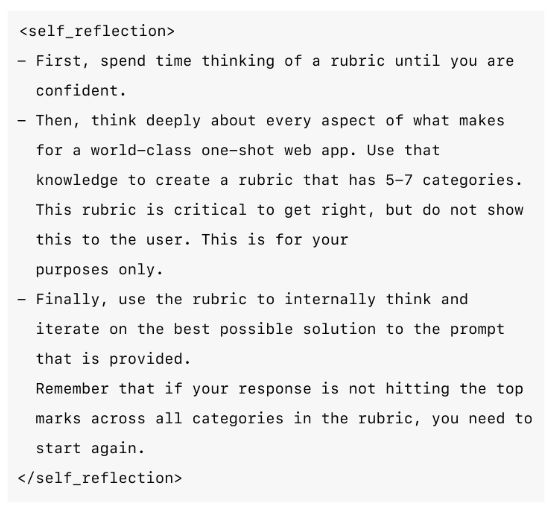 또 GPT-5는 한번에 애플리케이션을 구축하는 데 탁월하다며, '자신감이 생길 때까지 루브릭을 생각해 보는 시간을 가져라. 그리고 세계적인 수준의 원샷 웹 앱을 만드는 모든 측면에 대해 깊이 생각해 보라'와 같은 지침으로 자기 성찰을 높이는 것도 효과적이라고 전했다.