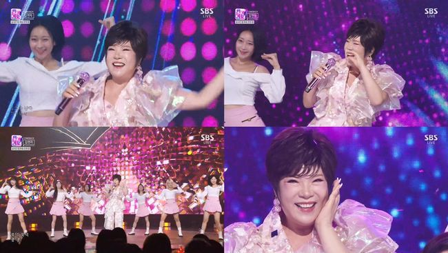 김연자는 17일 방송된 SBS ‘인기가요’에 출연해 리믹스 싱글 ‘쑥덕쿵 Remix’ 무대를 선보였다.
