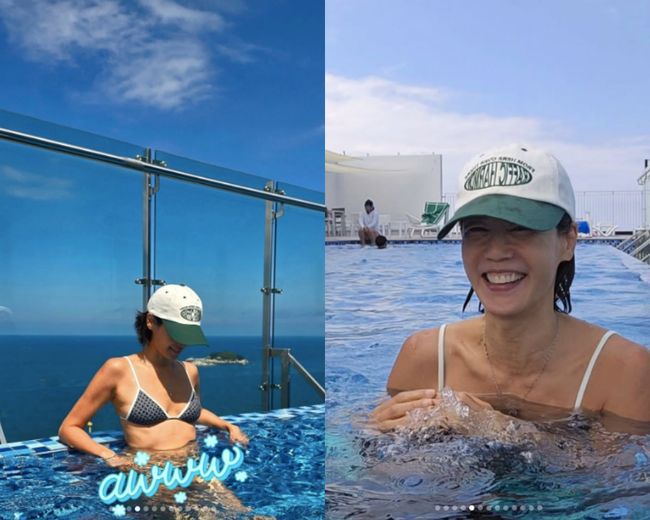 공개된 사진 속 김지호는 급 떠난 여름휴가를 즐기고 있는 모습이 담겼다. 야외 수영장에서 수영하고 있는 그는 카메라를 향해 환하게 미소 짓고 있다. 특히 김지호는 꾸준한 요가로 탄탄한 몸매를 관리하고 있던 바. 군살 하나 없이 완벽한 비키니 자태를 과시해 눈길을 사로잡았다.