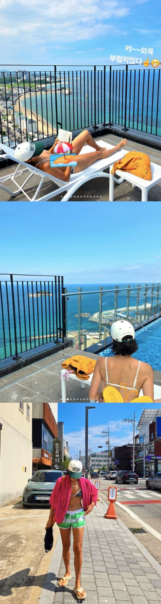 이어 “물을 워낙 좋아하는 우리라 참을 수 없다. 이렇게 놀고 있을 땐 나이가 잊혀진다. 그러나 곧 체력이 방전됨을 느낀다. 아 슬프다. 내려가자 잠시 누워야겠다. 배고픔에 치킨을 시켜 맥주 한 캔과 함께 치맥을 살짝 즐겼다. 집에 있어도 바다가 훤히 보이니 밖에 있으나 집에 있으나 경치가 일품이다”라며 여러 장의 사진을 게재했다.