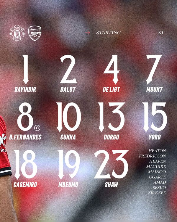 맨체스터 유나이티드와 아스널은 18일 오전 0시 30분(한국시간) 영국 맨체스터에 위치한 올드 트래포드에서 열리는 2025-26시즌 잉글랜드 프리미어리그(PL) 1라운드에서 맞대결을 펼친다.
