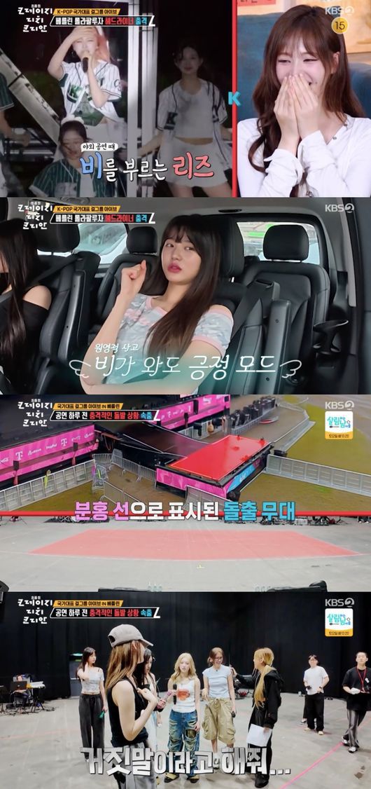걱정하는 멤버와 달리, 장원영은 편안하게 잠을 청하고 있었다. 인터뷰를 통해 장원영은 “저는 진짜 운이 좋다. 그냥 아예 비 걱정을 안했다”라고 밝혔다. 옆에서 듣던 레이는 “맞다. 원영이랑 같이 있으면 ‘럭키비키’인 만큼 나도 운이 좋아지는 것 같다”라고 인정했다.
