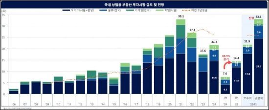 보고서에 따르면 올해 상반기 서울·분당 오피스 거래액은 약 11조7000억원으로 전년 동기 대비 188.4% 증가했다. 연간 거래규모는 최소 17조8000억원에서 최대 24조5000억원으로 전망했다. 금리 하락에 따른 매매가격 지수 상승세도 유지되고 있다. 권역별로는 GBD(강남 업무권역)의 회복 속도가 가장 빠른 것으로 나타났다.