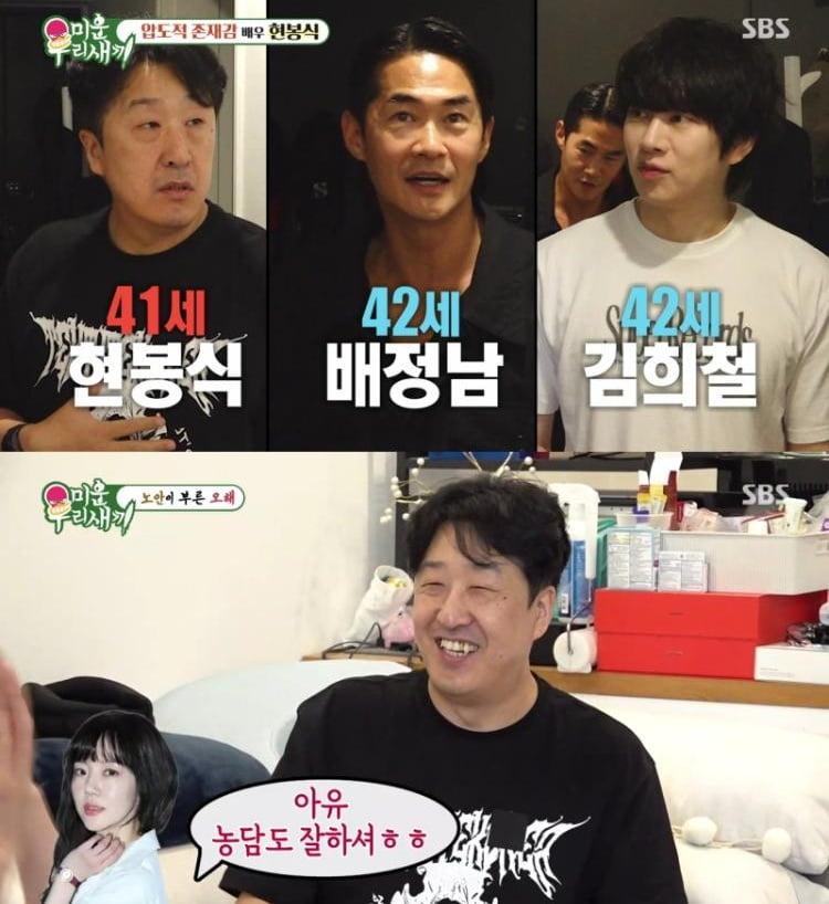 이날 배우 현봉식의 일상이 공개됐다. 김희철과 배정남이 현봉식의 집을 찾았고, 이중 현봉식이 가장 동생이라는 사실에 폭소가 터져 나왔다. 1984년생으로 동갑내기 유연석, 이준혁, 세븐, 김용준, 쌈디와 같이 찍은 사진이 공개되자 믿을 수 없다는 반응이 쏟아졌다. 현봉식은 “아직까지도 손호준이 나한테 말을 못 놓는다. 나는 고 1때부터 이 얼굴이었는데”라며 과거 사진을 공개해 모두를 놀라게 했다.