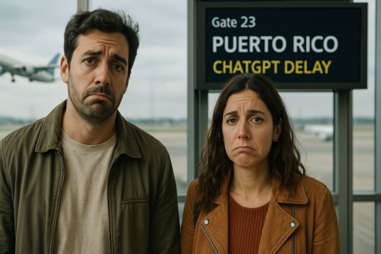 스페인 국적의 여행 인플루언서 커플이 챗GPT 정보만 믿다가 푸에르토리코행 비행기를 놓친 상황을 AI를 활용해 생성한 이미지. /사진=챗GPT