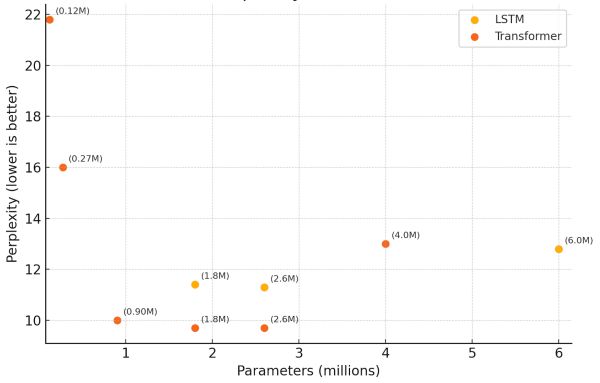 결국, 맥북 프로에서 5분 훈련 조건에서는 파이토치, 타이니스토리즈 데이터셋, 트랜스포머 180만 파라미터 조합이 가장 강력한 언어 모델을 만드는 방법이라는 결론에 도달했다.