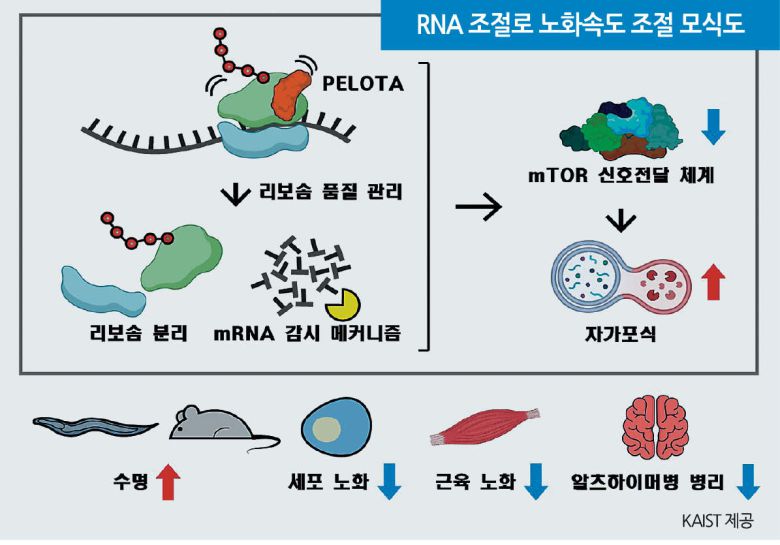 이승재 교수는 “지금까지 DNA 및 단백질 수준에서의 품질 관리와 노화의 연관성은 잘 알려져 있었지만, RNA 수준의 품질 관리 시스템이 수명 조절에 기능적으로 관여한다는 분자적 증거는 매우 드물었다”면서 “이번 연구는 비정상적인 RNA 제거가 노화 조절 네트워크의 핵심축 중 하나임을 보여주는 강력한 근거를 제시한 것”이라고 전했다.