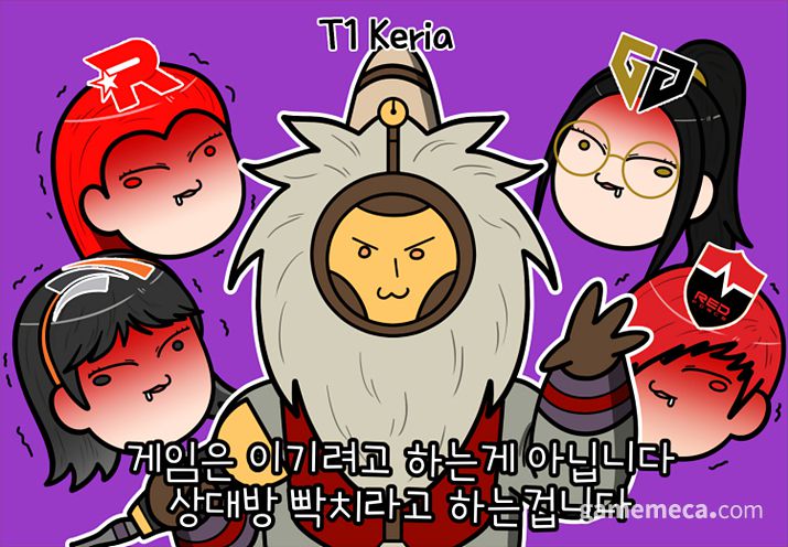 서포터 챔피언인 바드는 변수 창출에 능하지만, 라인전이 강한 픽은 아니기에 통상적인 프로 씬에서는 꺼려지는 챔피언입니다. 더구나 궁극기 '운명의 소용돌이'나 E스킬 '신비한 차원문'으로 생기는 변수는 아군에게 향할 수도 있는 양날의 검 같은 챔피언이기에 자주 꺼내기에 꺼려지는 픽입니다. 하지만 최근 3R부터 T1 '케리아' 류민석이 적극적으로 기용해 월즈 우승 스킨의 주인 다운 숙련도를 뽐내고 있습니다. 쟁쟁한 상대들이 즐비한 레전드 그룹에서 세트 5연승을 이어가고 있거든요.