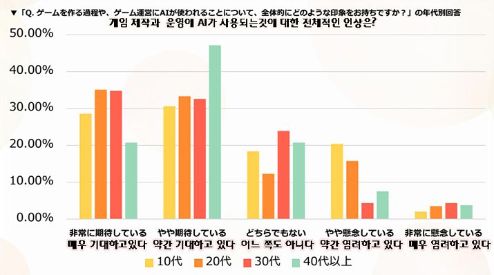 ▲ 세대별 AI에 대한 호감/비호감 설문조사 결과 (자료출처: 게임에이트 보고서) |