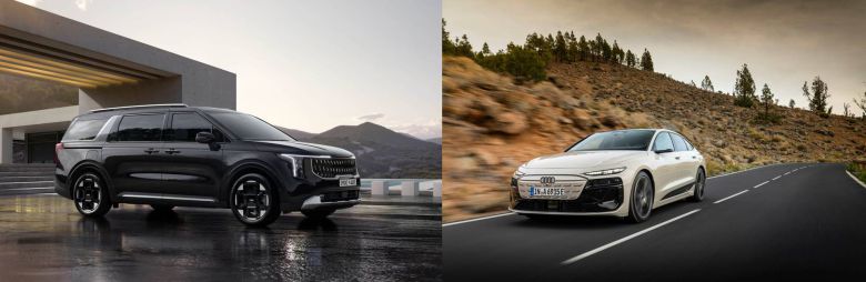 기아 'The 2026 카니발'·아우디 '더 뉴 A6 e트론' (왼쪽부터) / 출처=각사 |