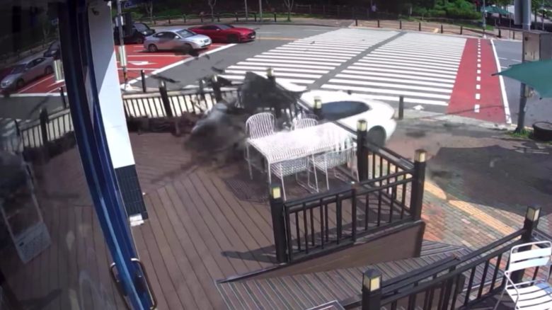 이 사고로 건물에 부딪힌 차량에 불이 붙고 점포 유리창과 구조물 일부가 파손됐습니다.