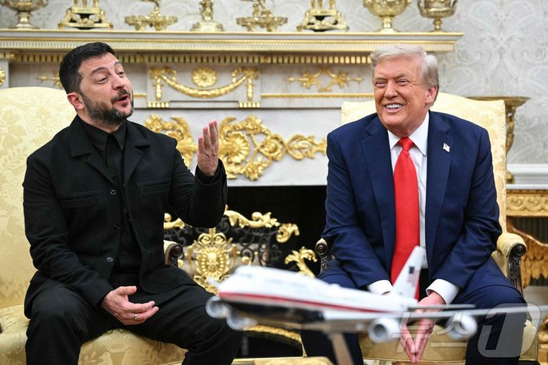도널드 트럼프 미국 대통령(우)과 볼로디미르 젤렌스키 우크라이나 대통령이 28일(현지시간) 워싱턴DC 백악관에서 만나 우크라이나 전쟁 종전 방안을 두고 고성이 오가는 설전을 벌이고 있다. ⓒ 로이터=뉴스1 ⓒ News1 류정민 특파원 |
