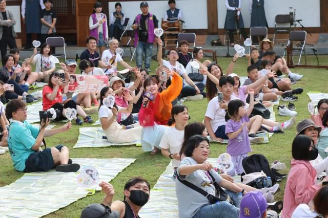 대만 관광객들이 완주 대승한지마을에서 이다혜 치어리더 팬미팅에 참여하고 있다. [사진=한국관광공사] |