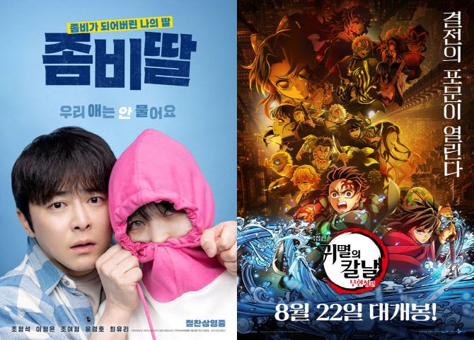 영화 ‘좀비딸’(왼쪽)과 ‘극장판 귀멸의 칼날:무한성편’ 포스터 |