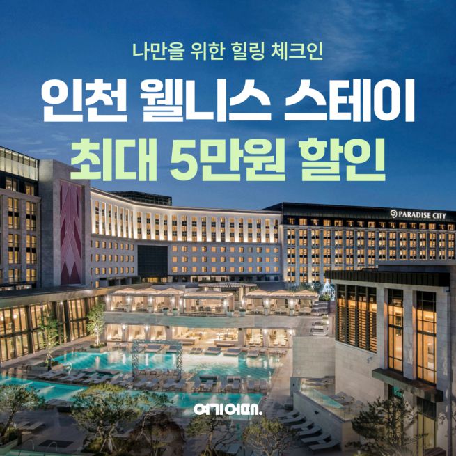 여기어때는 '웰니스'를 콘셉트로 인천 여행 할인전을 연다고 19일 밝혔다. '인천 웰니스테이'란 이름으로 열리는 이번 행사는 인천시와 인천관광공사가 선정한 숙소와 체험 상품에 적용하는 최대 5만 원권 쿠폰을 발급한다. 대상 숙소는 총 8곳이며 스파부터 요트 체험까지 인천 14개 웰니스 체험 상품을 할인받을 수 있다.