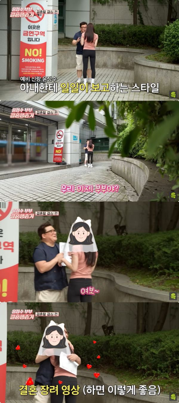 이날 윤정수는 "중요한 일이 있다"며 혼인신고를 하러 구청으로 향했다. 앞서 그는 12살 연하 필라테스 강사 여자친구와 결혼을 발표한 바 있다.