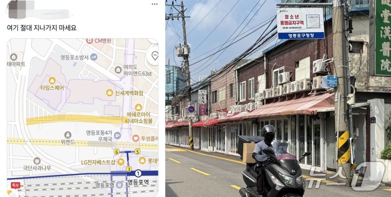 X(구 트위터) 갈무리(왼쪽)와 18일 서울 영등포구 성매매 집결지의 모습. 2025.8.18/뉴스1 ⓒ News1 송송이 기자