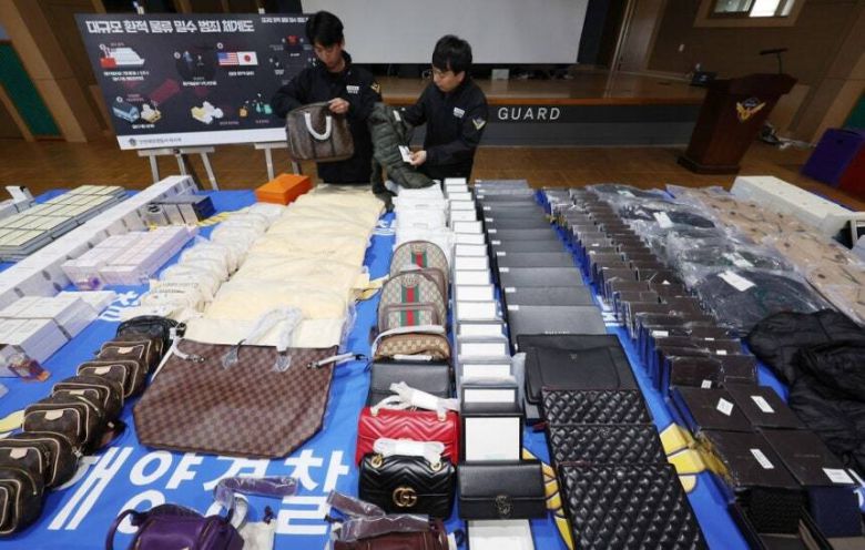 지난 2023년 인천해양경찰이 밀수조직으로부터 압수한 명품 위조품. 인천/연합뉴스 |