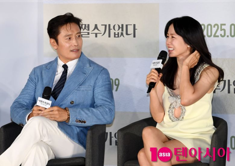 [텐아시아=조준원 기자]배우 이병헌과 손예진이 19일 서울 용산구 CGV 용산아이파크몰에서 열린 영화 <어쩔수가없다> 제작보고회에 참석하고 있다.