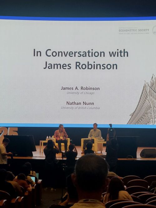 로빈슨 교수는 이날 오후 서울 강남구 코엑스에서 열린 세계경제학자대회(ESWC)에 참석해 네이선 넌 캐나다 브리티시컬럼비아대 교수와 대담을 갖고 이같이 말했다. 로빈슨 교수는 경제 발전와 정치·문화 제도의 연관성을 연구한 학자로, '제도경제학'의 권위자로 평가된다. 2012년 저서 '국가는 왜 실패하는가'를 썼다.