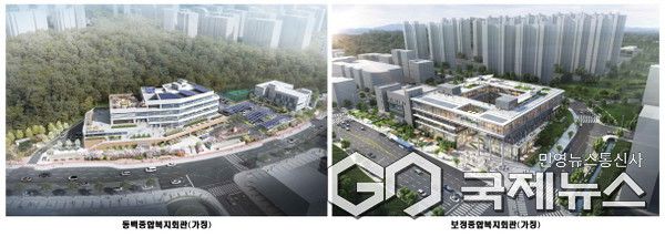 2026년 4월 개관 예정인 가칭 동백종합복지회관(왼쪽)과 보정종합복지회관(오른쪽) 조감도 사진(사진=용인시) |