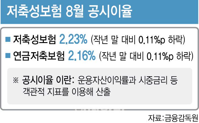 [이데일리 김형일 기자] 저금리 기조로 저축성보험(저축성 연금·종신보험)의 가치가 하락하고 있다. 시중금리 영향을 받는 공시이율이 하락하면서 환급금과 보험금 규모가 줄어든 탓이다. 보장성·연금·저축·연금저축보험 등 4종의 상품에 적용하는 공시이율이 올 들어 이달까지 8개월째 하락세를 나타냈다. 공시이율은 보험상품에 적용하는 금리를 말한다. 이율이 올라가면 소비자가 만기에 돌려받는 보험금이나 중도해약 환급금의 규모가 커지고 반대로 내려가면 줄어든다.
