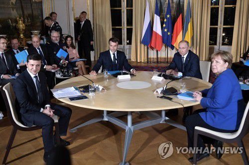 당시 푸틴 대통령과 젤렌스키 대통령, 앙겔라 메르켈 독일 총리, 에마뉘엘 마크롱 프랑스 대통령이 프랑스 파리에서 열린 '노르망디 형식 회담'의 4자 정상회담에 참석했다. 이는 노르망디 상륙작전 70주년 기념식을 계기로 처음 회동한 뒤 이어진 4개국간 비공식 회의다.