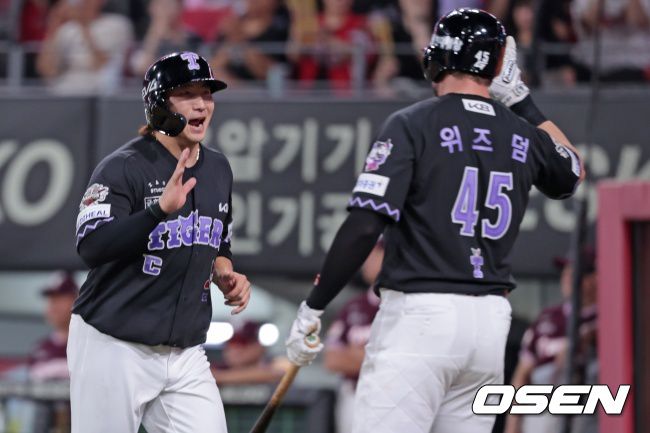 KIA는 19일 광주-기아 챔피언스필드에서 열린 2025 신한은행 SOL Bank KBO리그 키움 히어로즈와의 팀간 13차전을 12-9로 잡았다. 나성범의 역전 스리런포, 최형우의 달아나는 3점포, 위즈덤의 솔로포 등 장단 14안타를 터트렸다. 지난 주말 두산과의 잠실경기 3연패의 충격을 씻어내는 1승이었다.