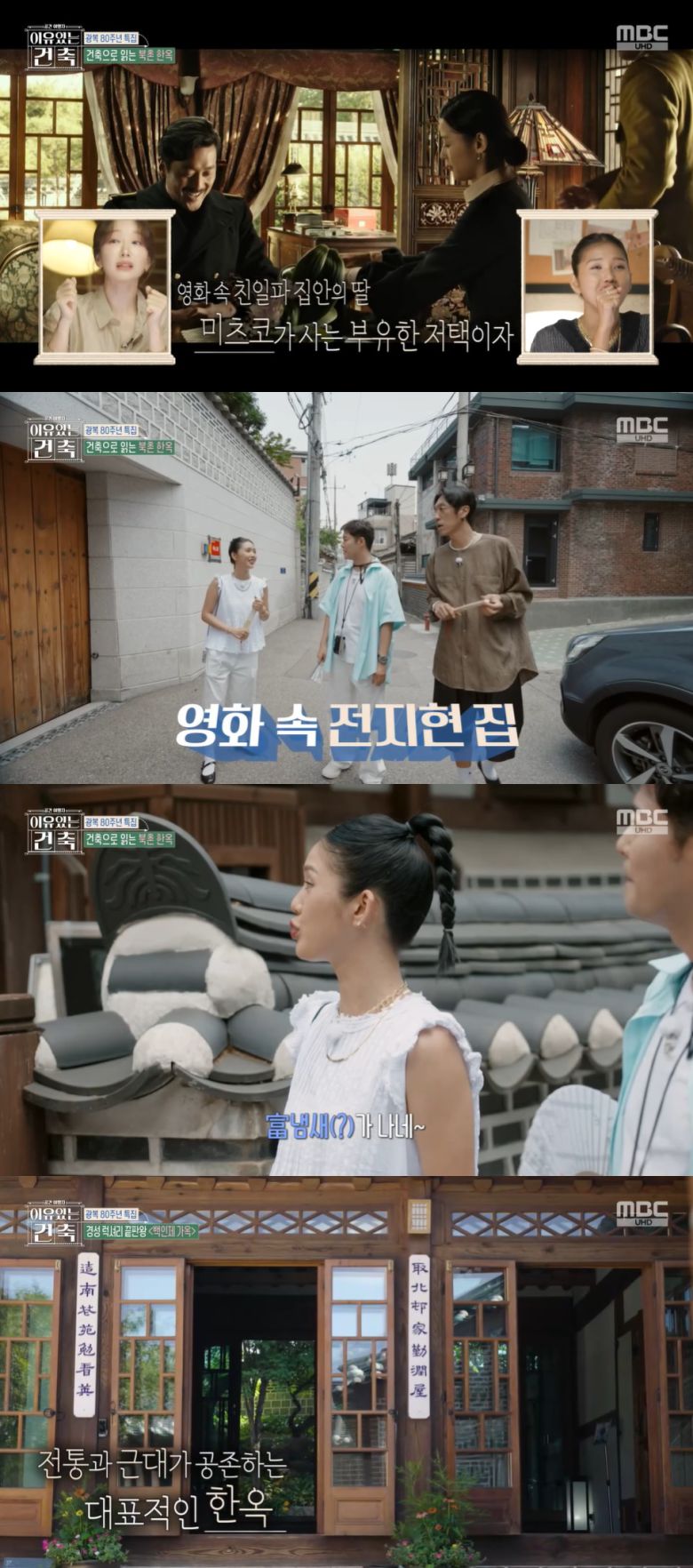 19일 방송된 광복 80주년 특집 MBC 교양프로그램 '이유 있는 건축-공간 여행자'에서는 일제강점기 조선인들의 거주지를 지키기 위해 조성된 북촌 한옥마을로 건축 여행을 떠나는 전현무와 코요태 빽가, 오마이걸 미미의 모습이 그려졌다.
