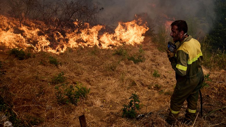 ▲ 현지시간 18일 스페인 서북부 지역에서 발생한 화재와 싸우는 소방관