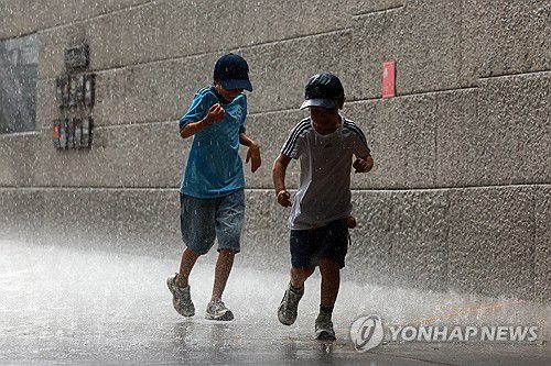 소나기 내려도 즐거워[연합뉴스 자료사진]