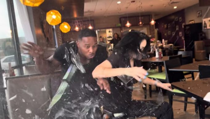 이들이 올린 영상을 보면 두 사람이 샌드위치를 베어 무는 순간 갑자기 한 차량이 이들 자리로 돌진해 테이블을 밀어버렸다. 레스토랑 유리창이 산산조각 나고 파편이 날아가는 모습도 촬영 중인 카메라에 고스란히 담겼다.