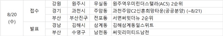 아울러 부산 수영구 '써밋리미티드남천'과 경남 김해시 '김해삼계동일스위트'는 이날 당첨자를 발표한다.