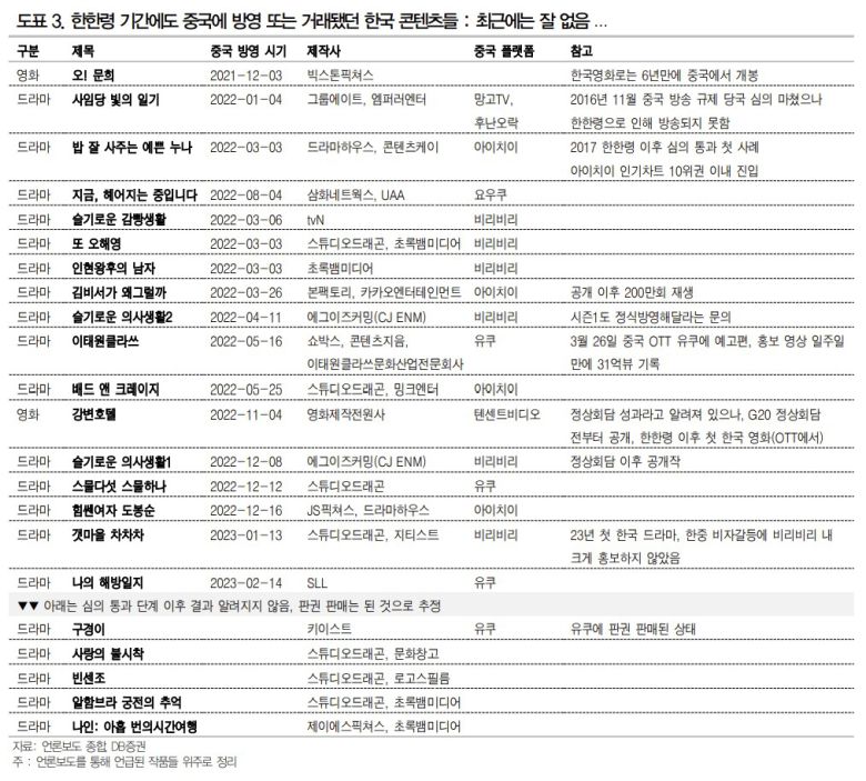 한한령 기간에도 중국에서 방영된 한국 콘텐츠 |