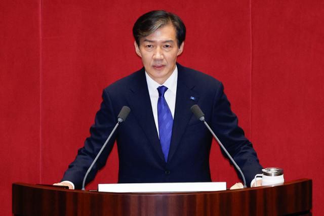 조국 전 조국혁신당 대표가 지난해 9월 9일 오후 서울 여의도 국회 본회의장에서 비교섭단체 대표 연설을 하고 있다. 조 전 대표는 동료 의원님께 간곡히 호소한다며 이제 교섭단체 기준을 개선하자고 촉구했다. 뉴스1 |