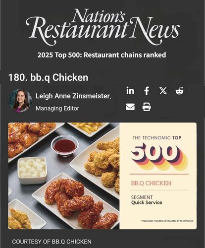 '2025 미국 외식 프랜차이즈 브랜드' 180위에 오른 BBQ