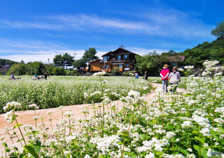 2코스(1인 13만 9000원)는 메밀꽃 축제를 즐긴 후 대관령 해발 1000m 발왕산 자락에 위치한 애니포레를 방문해 알파카 모노레일 체험과 가문비 치유숲 탐방, 수국차 시음을 경험한 뒤, 대관령한우타운에서 한우구이 정식을 맛보고 돌아오는 구성이다.