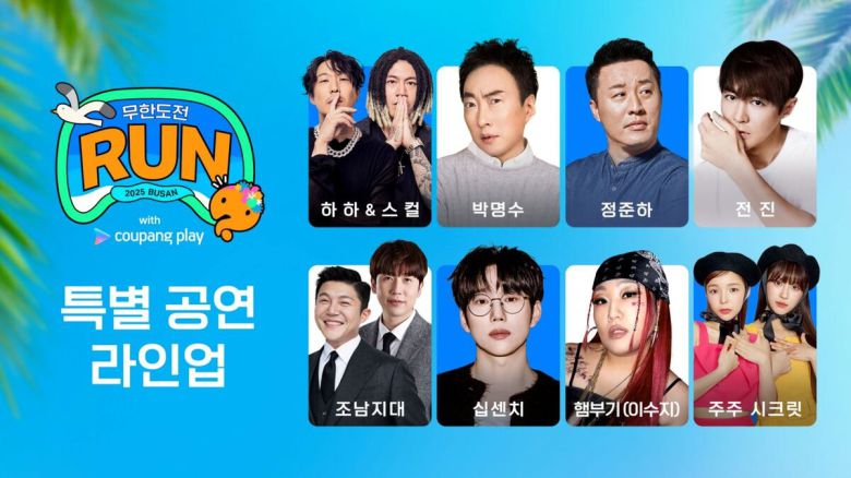 쿠팡플레이가 ‘무한도전 Run with 쿠팡플레이 in 부산(무한도전 런 위드 쿠팡플레이 인 부산)’ 개최를 기념해 20일(수) 오전 10시부터 공식 MD를 쿠팡에서 단독 판매를 개시한다. 또한 오는 30일(토) 10K 마라톤에 이어 열리는 특별 공연의 완성 라인업도 발표했다.