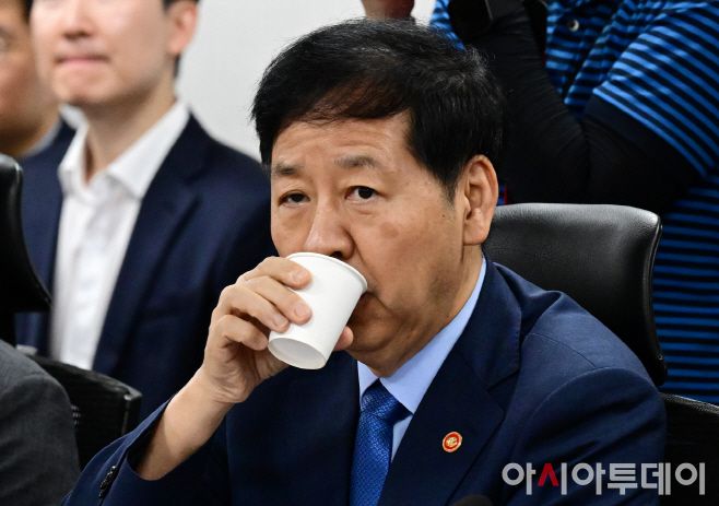 구윤철 경제부총리 겸 기획재정부 장관이 20일 국회 의원회관에서 열린 새정부 경제성장전략 당정협의에서 물을 마시고 있다./사진 = 이병화 기자 |
