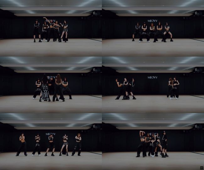 영상에는 통일감 있는 블랙 컬러의 스포티한 의상을 입고 연습에 임하는 MEOVV의 모습이 담겼다. 음악이 시작되자 마치 실제 무대처럼 빈틈없는 퍼포먼스와 표정 연기를 선보이는 다섯 멤버의 강렬한 개성이 보는 이들의 시선을 사로잡는다.