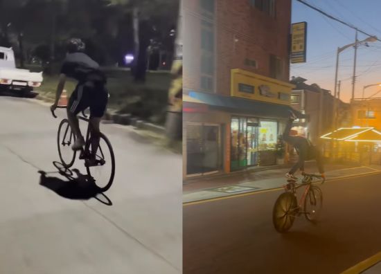 도로에서 픽시 자전거를 타고 있는 10대들. 유튜브 캡처 |