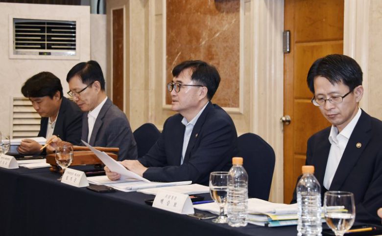 임기근 기획재정부 차관(오른쪽)이 20일 서울 여의도 켄싱턴호텔에서 열린 '제3차 조달정책심의위원회'를 주재하고 있다. 기획재정부 제공 |