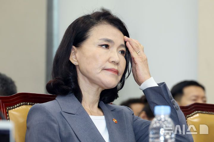 [서울=뉴시스] 고승민 기자 = 이진숙 방송통신위원장이 20일 서울 여의도 국회에서 열린 과학기술정보방송통신위원회 전체회의에서 머리카락을 넘기고 있다. 2025.08.20. kkssmm99@newsis.com |