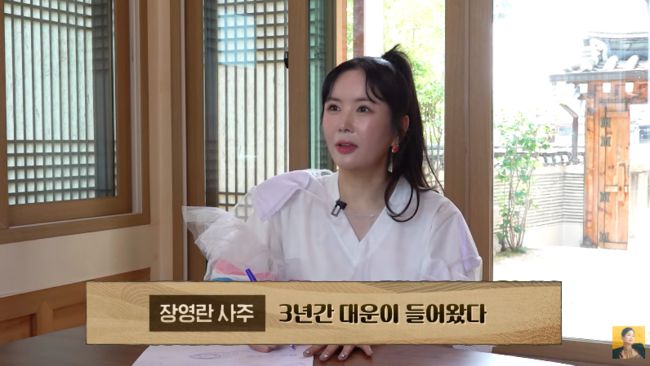 [OSEN=박하영 기자] 방송인 장영란이 남편과 궁합이 좋은 가운데 3년 동안 운이 들어오는 소리에 기쁨을 감추지 못했다.