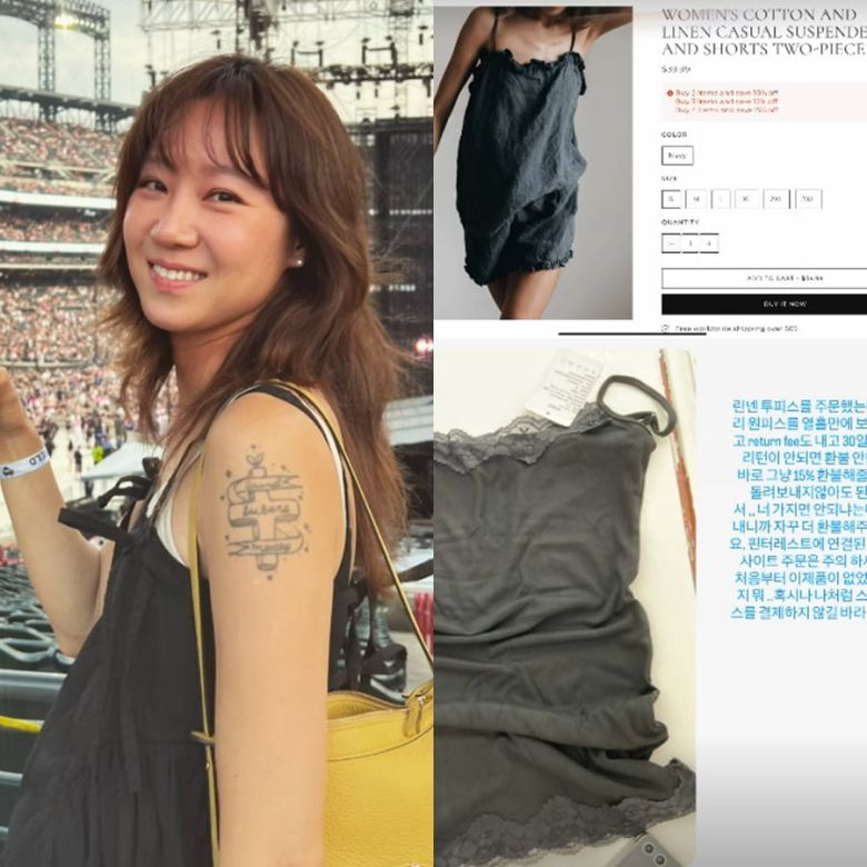 공효진은 20일 자신의 인스타그램 스토리에 "린넨 투피스를 주문했는데 폴리 원피스를 10일 만에 보내놨다"며 상품을 잘못 받은 상황을 전했다.