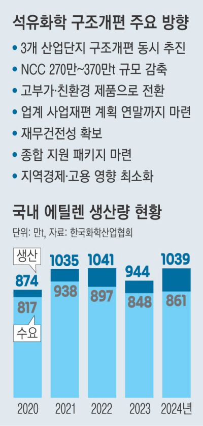 정부가 이날 자율협약을 요구하며 밝힌 270만~370만t 규모 NCC 감축은 국내 수요를 넘어서는 부분까지는 가능한 한 줄이자는 취지다. 이는 국내 NCC 생산 능력 1470만t의 18~25%에 해당한다.