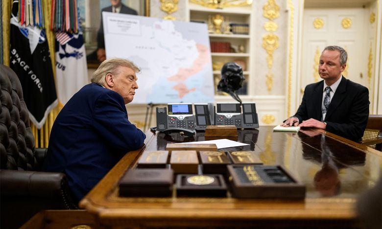 트럼프, 푸틴과 통화하는 모습 공개 우크라이나 종전 방안 논의를 위해 워싱턴 백악관에서 미국, 유럽, 우크라이나의 정상회담이 열린 지난 18일(현지시간) 도널드 트럼프 미국 대통령이 집무실에서 블라디미르 푸틴 러시아 대통령과 통화를 하고 있다. 회담 성과를 강조하려는 듯 백악관은 20일 통화 사진을 공개했다.워싱턴=UPI연합뉴스