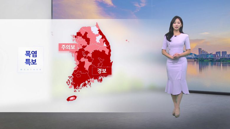 전국에 폭염특보가 이어지는 가운데 특히 남부와 동해안을 중심으로는 35도를 웃돌면서 심한 더위가 계속되겠습니다.
